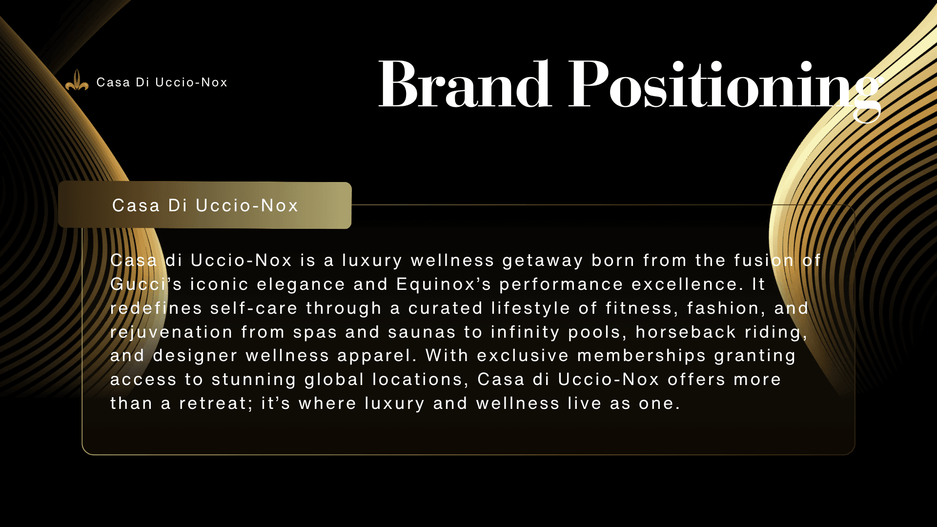 I proudly present Casa di Uccio-Nox, an exclusive luxury wellness getaway born from the innovative merger of Gucci’s iconic elegance and Equinox’s performance excellence. This unique project redefines self-care by seamlessly blending fitness, fashion, and sophisticated lifestyle experiences into a curated retreat for discerning guests.